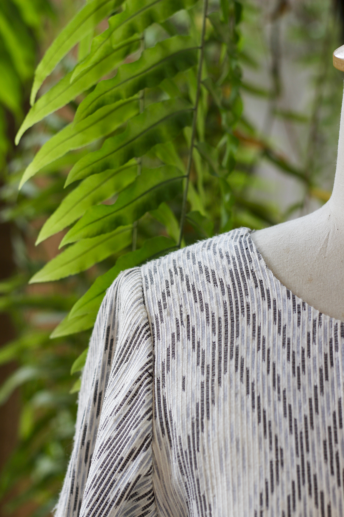 This unique silk dress is made in one of our original Studio ikat fabric designs ‘The Maze’. It is a simple A-line cut to show off the beautiful fabric lined with cotton muslin and it has pockets!