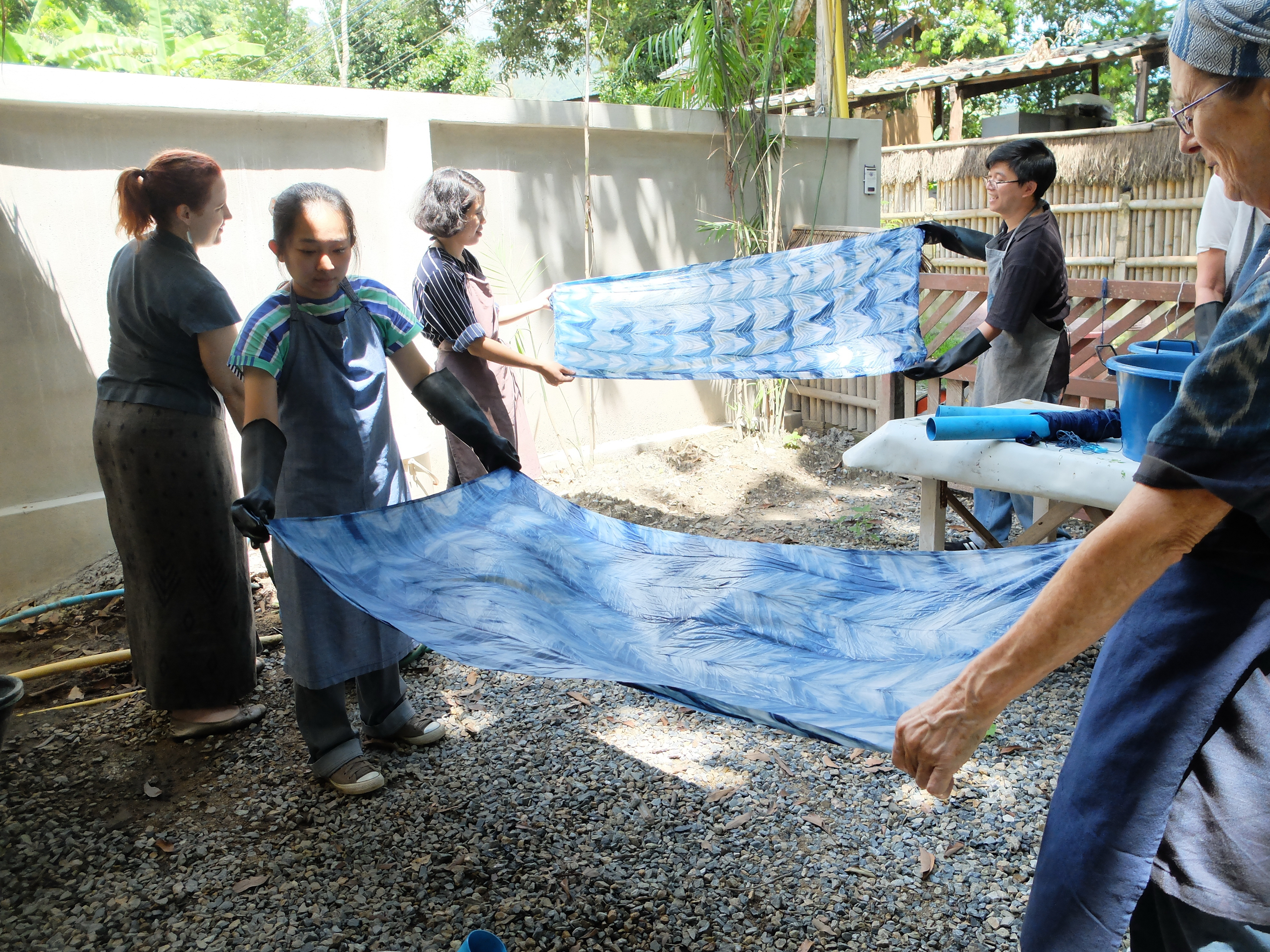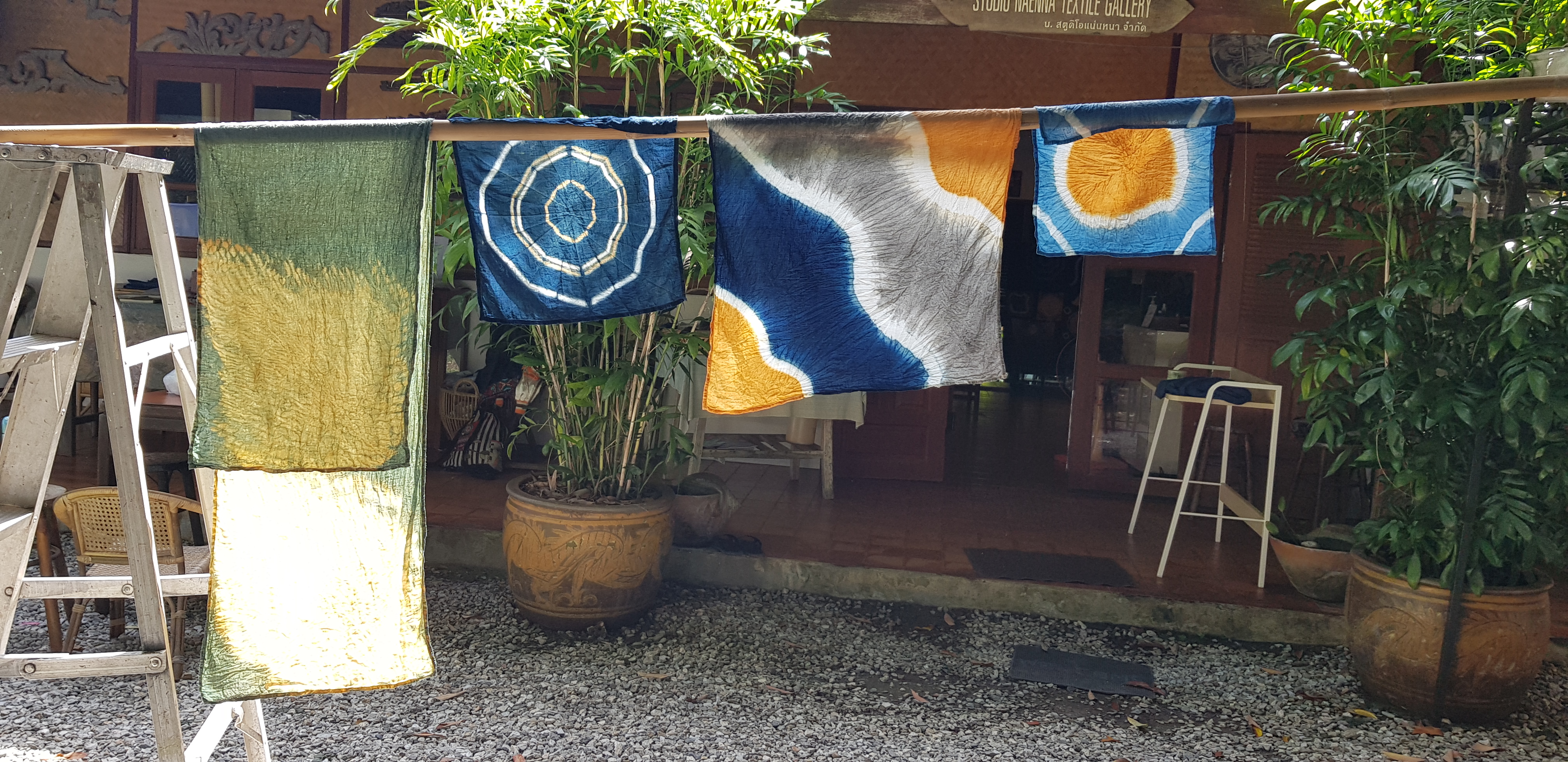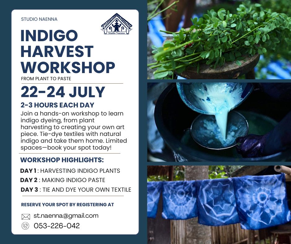 At Studio Naenna we will take you through the whole indigo process, from harvesting the indigo to planning and dying your individual pieces using our 25 year old indigo vats. As a result the Indigo Workshops are only available during the end of the rainy season when the plants are ready. In Chiang Mai, this is normally between September and November each year. The workshop is limited to 10 participants per group and takes place over three days.