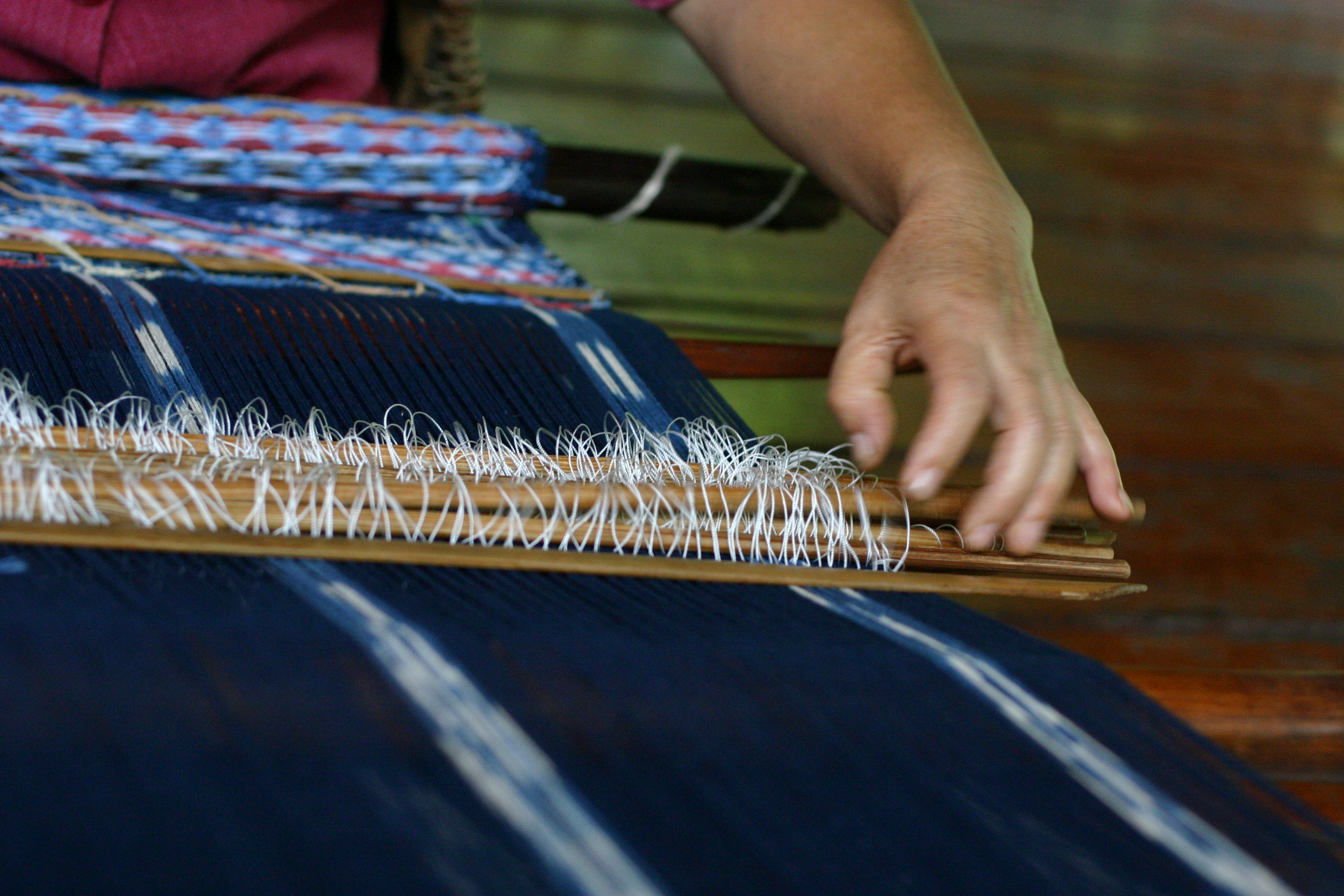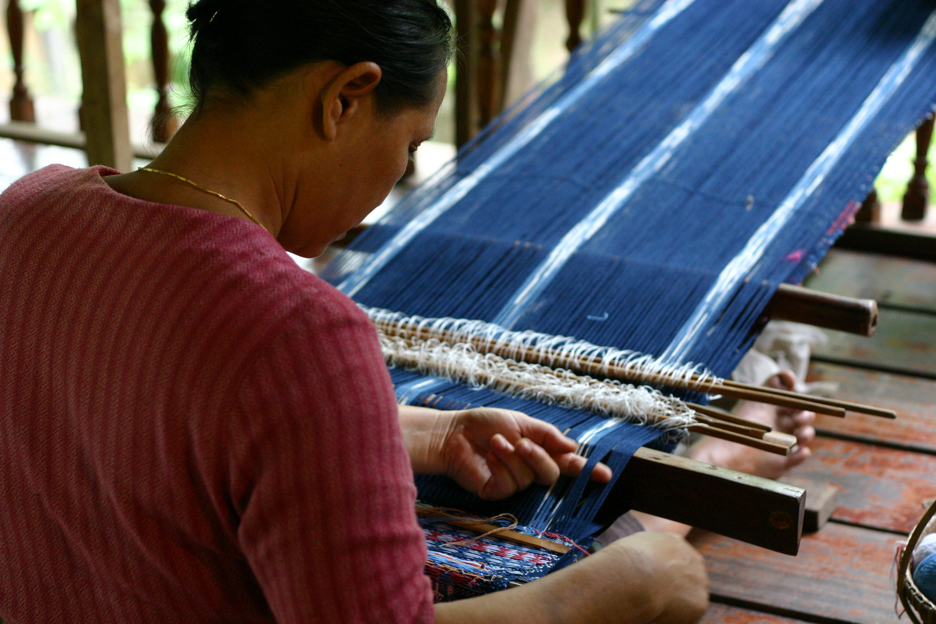 Our Weaving Workshop takes place on a one to one basis, using traditional Karen backstrap looms and working with our own naturally dyed cottons. The Workshop runs over the course of five days and spans the entire weaving process, from selecting your colours and planning your design to the finished product.